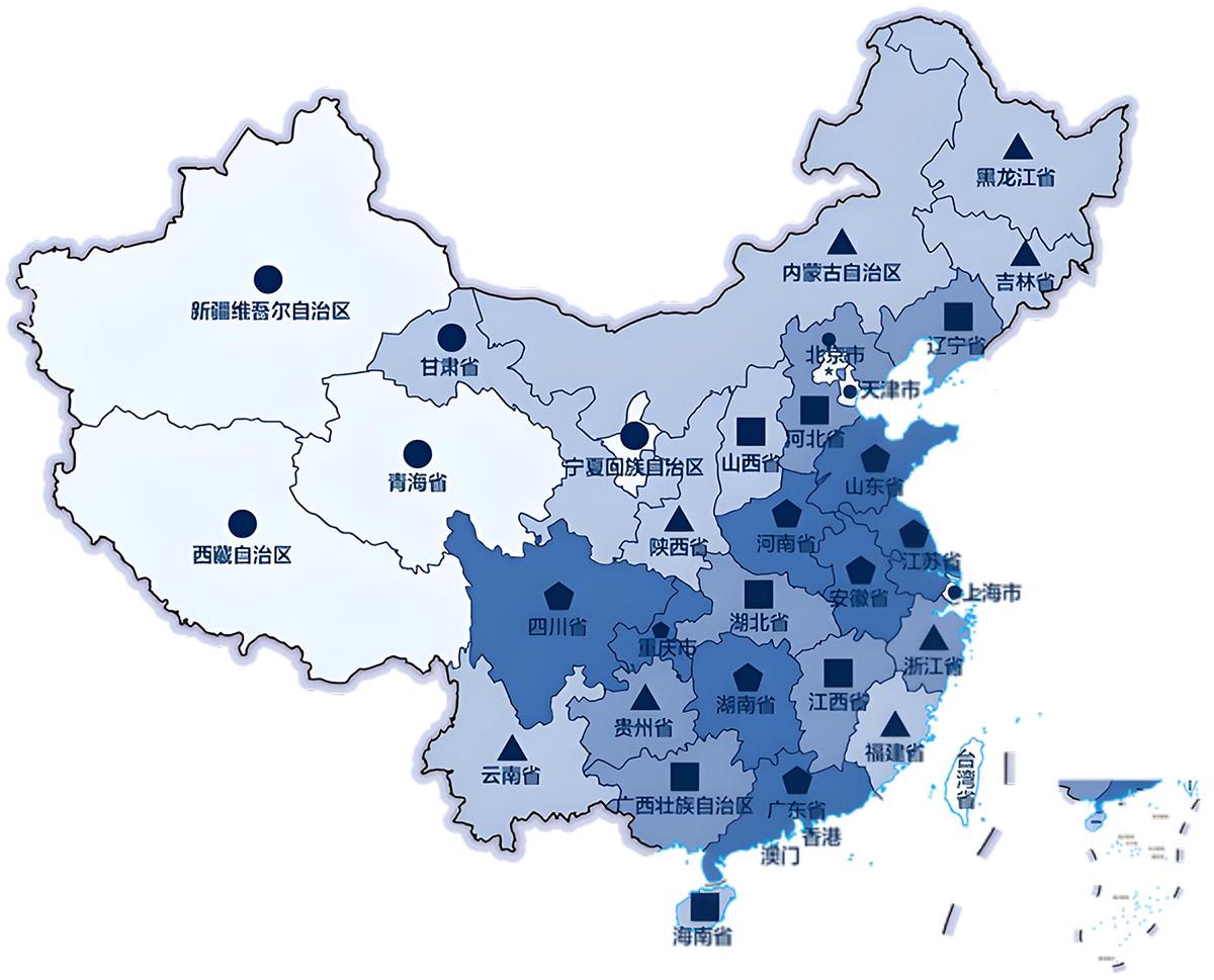 四川、贵州、云南、山西、甘肃、陕西、宁夏、青海、新疆